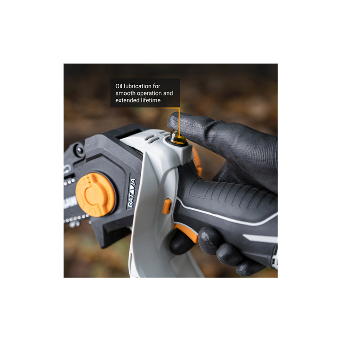 | Muud funktsioonid | Rotating head (0° to 32°) offers flexibility for all pruning tasks; Manual oiling system enhances durability of chain and motor; Cuts through wood up to 12 cm thick with powerful 18V motor |