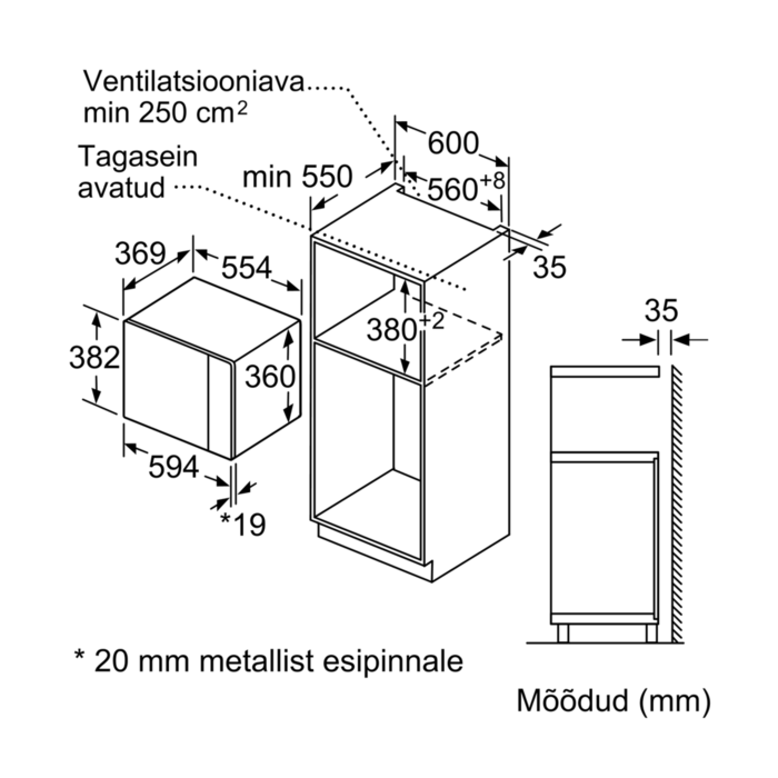Max võimsus 900 W; 5 mikrolaineahju võimsusvalikut: 90 W, 180 W, 360 W, 600 W, 900