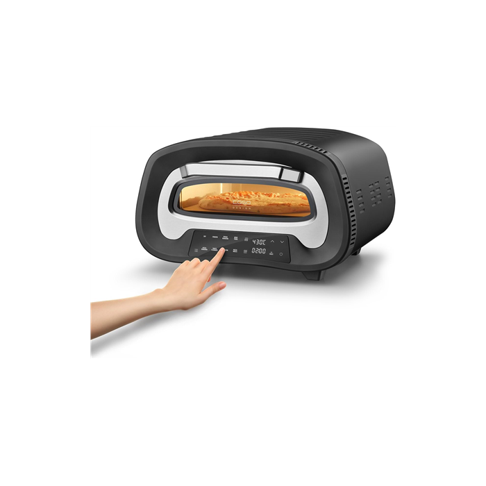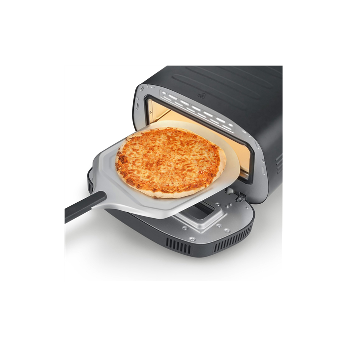 | Muud funktsioonid | Individually selectable heating elements (top or bottom heat) ensure the perfect pizza with a crispy base and juicy topping; Simple operation thanks to digital display and sensor touch control with various pizza programmes; Includes high-quality and fast-heating large pizza stone made of cordierite; Safe and heat-resistant steel housing; 8 automatic programs for Pinsa Romana, New York Style, Flammkuchen, and more |