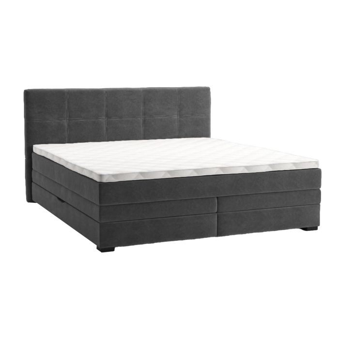 Kontinentaalvoodi JEEP panipaigaga 160x200cm, hall. Voodi korpus ja peats on kaetud sametise polüesterkangaga, Martindale väärtus 105 000, 370g/m². Voodi alusraam koosneb kahest poolest. Alusraami mõlema poole sees on ruumikas panipaik, mis avaneb küljelt. Alusraam on valmistatud mööbliplaadist. Madratsi alusraam koosneb kahest poolest. Raami küljed on valmistatud puidust. Raami sees on 80mm bonell vedruplokk. Madratsi sees on 120mm pocket vedrud, mis on kaetud 3cm polüuuretaanvahu kihiga 25kg/m³. Kattemadratsi sisu on polüuretaanvaht 25kg/m³, paksus 4cm. Voodi üldmõõdud on 170x210xH55/107cm.