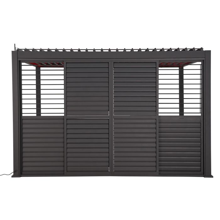 Lamell-lükandsein varikatuse MIRADOR-111 3m küljele, tumehall. Seinapaneeli mõõdud on 2790x2365mm. Horisontaalposti mõõdud on 95x73,9x1,5x1395mm/53x35,5x1,5x688mm/58x35x1,5x688mm. Küljeposti mõõdud on 46,5x39x1,5x2296mm. Lamelli mõõdud on 102x15x1x598mm. Sein on valmistatud alumiiniumist ja kaetud tumehalli pulbervärviga. Tutvuge ka teiste MIRADOR-111 varikatustele pakutavate kardinate ja küljeseinte valikuga!