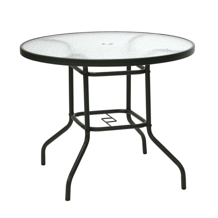 Laud DUBLIN D90xH71cm, tumepruun. Lauaplaat: 5mm läbipaistev laineline klaas. Laua keskel on päikesevarjuauk D4cm. Laua raam ja jalad on valmistatud terasest ja viimistletud tumepruuni pulbervärviga.