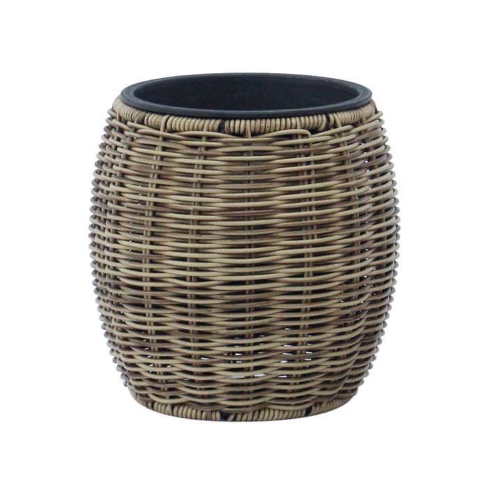 Lillepott WICKER D20xH20cm, helepruun. Lillepoti metallraam on kaetud plastikpunutisega. Plastikust sisepoti mõõdud on D14xH13cm. Sisepott on ilma auguta.