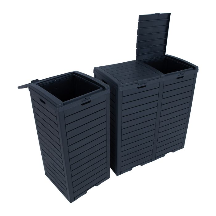 Prügikast GALA 78x41xH86cm/230L, must puidu imitatsiooniga plastik. Ilmastikukindel plastikust prügikast on lihtsalt hooldatav ja hästi vastupidav. Kast on konstrueeritud nii, et prügikotid püsivad hästi paigal ja neid on lihtne vahetada. Väljatõmmatav alus võimaldab kasti põhja kogunenud vedeliku kerge vaevaga eemalda ja kasti alati puhtana hoida.