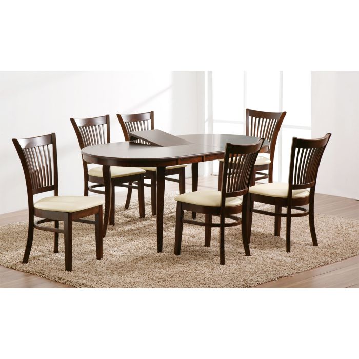 Pikendatav söögilaud JOY 145/178x90xH74cm. Laud on valmistatud kummipuust ja viimistletud tumeda pähklitoonis lakiga. Söögilaud on pikendatav. Lauaplaat avaneb keskelt ja pikendus asetatakse kahe poole vahele. 33cm laiune kokku klapitav vaheplaat on paigutatud lauaplaadi alla.