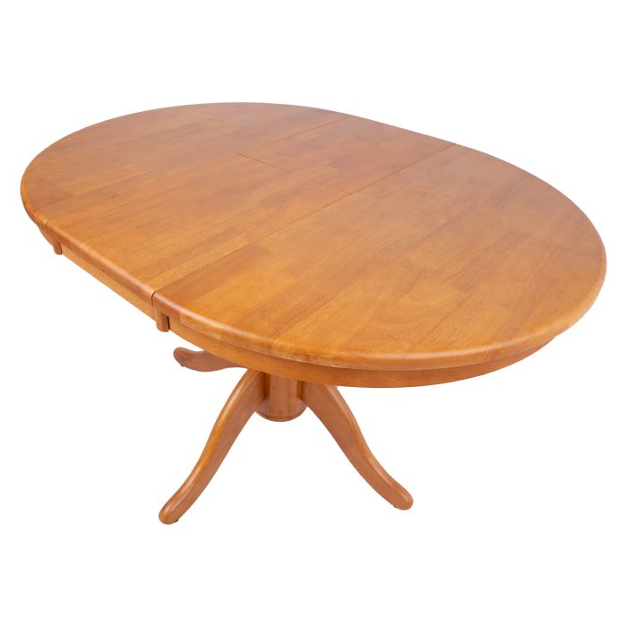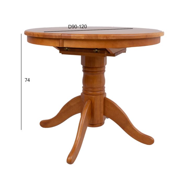 Pikendatav söögilaud MIX & MATCH D90/120xH74cm. Laud on valmistatud kummipuust ja viimistletud heleda tammetoonis lakiga. Laud on pikendatav. Lauaplaat avaneb keskelt ja pikendus asetatakse kahe poole vahele. 30cm laiune vaheplaat on paigutatud lauaplaadi alla.