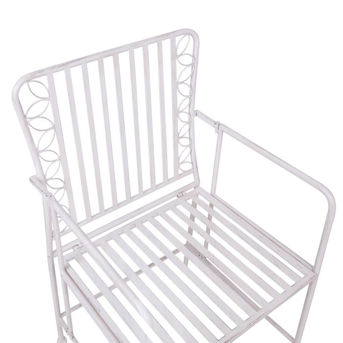 Tool JASMINE 54x53xH92cm, antiikvalge metall. Istme laius 49cm, istme sügavus 42cm, istme kõrgus 44cm. Käetoe kõrgus maast 68cm. Kaalupiirang 100kg. HOOLDUS JA HOIUSTAMINE: metallist mööbel on praktiliselt hooldusvaba, piisab regulaarsest puhastamisest. Suvehooaja lõppedes soovitame aiamööblit hoiustada siseruumides. Puhastage ja kuivatage mööbel enne hoiule panekut. Kasutage hoiustamiseks kuiva ning hea ventilatsiooniga ruumi.