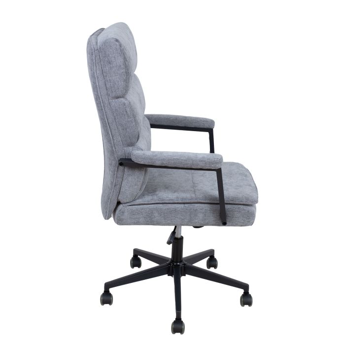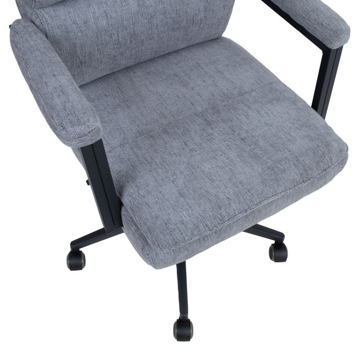 Töötool REMY hall. Tooli pehme polsterdusega iste ja seljatugi on kaetud pehme ja vastupidava enillkangaga. Toolil on sünkroonmehhanism. Istme kõrgus on reguleeritav gaasamordi abil. Mustad metallist käetoed on pehme polsterdusega. 5-haruline jalarist on valmistatud metallist ja viimistletud musta pulbervärviga, R32cm. Toolil on põrandat säästvad PU kattega rattad. Tooli üldmõõdud on 65x72xH108-115cm. Istme laius 50cm, istme sügavus 47cm, istme kõrgus 49-56cm. Käetugede kõrgus istmest on 20cm. Kaalupiirang 120kg.