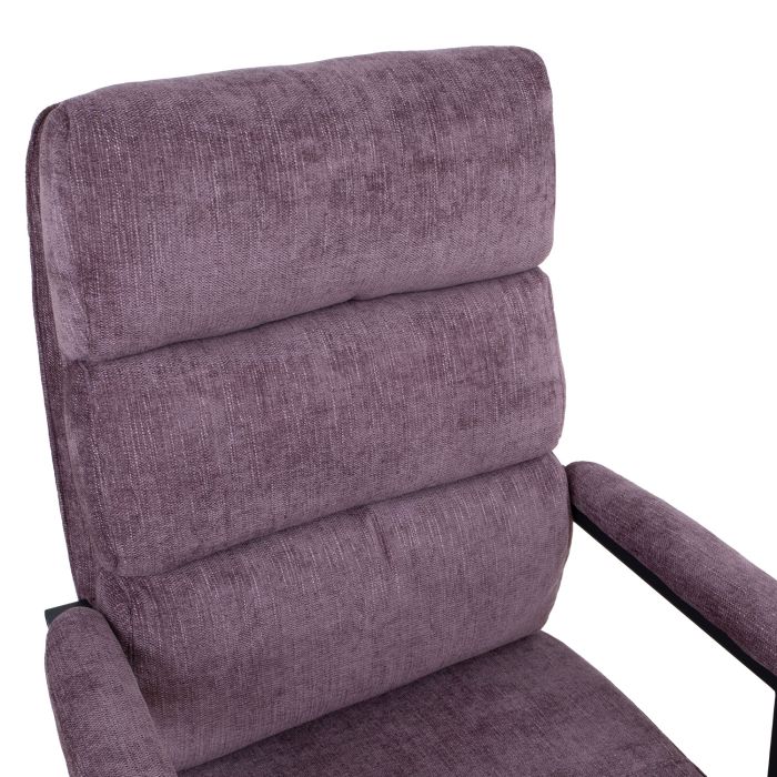 Töötool REMY lilla. Tooli pehme polsterdusega iste ja seljatugi on kaetud pehme ja vastupidava enillkangaga. Toolil on sünkroonmehhanism. Istme kõrgus on reguleeritav gaasamordi abil. Mustad metallist käetoed on pehme polsterdusega. 5-haruline jalarist on valmistatud metallist ja viimistletud musta pulbervärviga, R32cm. Toolil on põrandat säästvad PU kattega rattad. Tooli üldmõõdud on 65x72xH108-115cm. Istme laius 50cm, istme sügavus 47cm, istme kõrgus 49-56cm. Käetugede kõrgus istmest on 20cm. Kaalupiirang 120kg.
