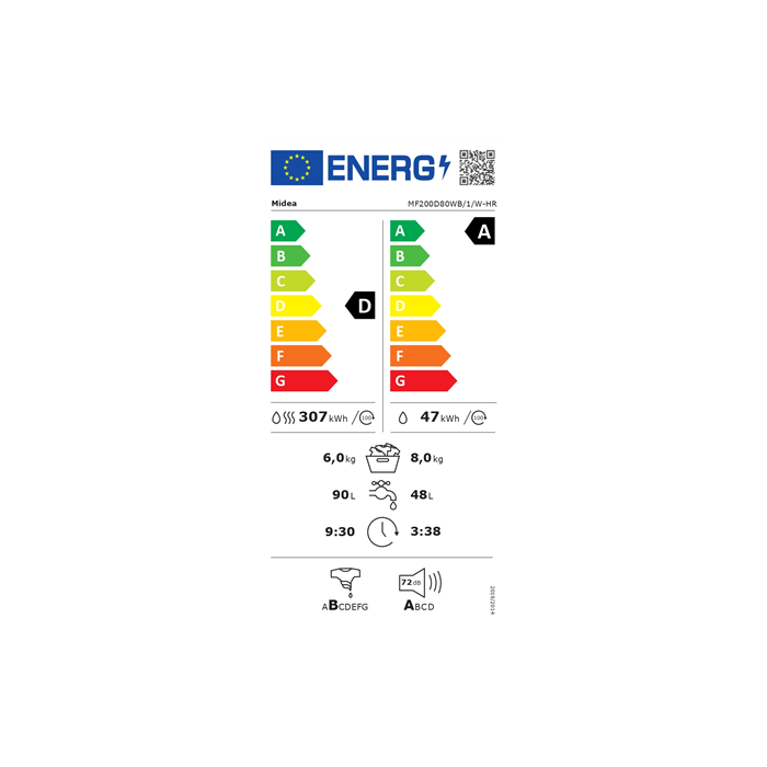 | Energiakulu 100 pesukuiva tsükli kohta | 307 kWh |
