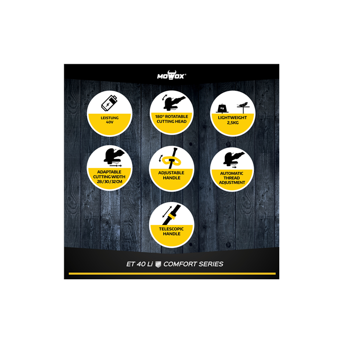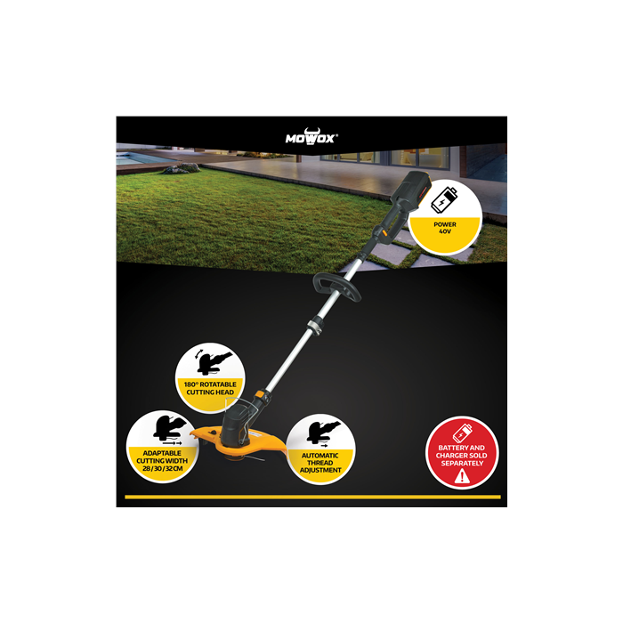 | Muud funktsioonid | Thread thickness/adjustment: 1.6mm/automatic; Trimmer shaft: Made of aluminum with telescopic function; Trimmer head: 180° rotating cutting head |