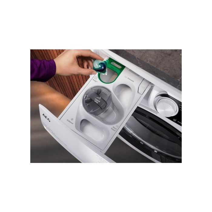 Pesumasin, 8 kg, 1400 p/min, 72 dB, LED ekraan, invertermootor, PreciseWash kohandab automaatselt energiatarbimist ja sätteid sõltuvalt pesu kaalust, aurutamine vähendab triikimisvajadust, lisaloputus, turvalukustus. UniversalDose pesukapslite dosaator.