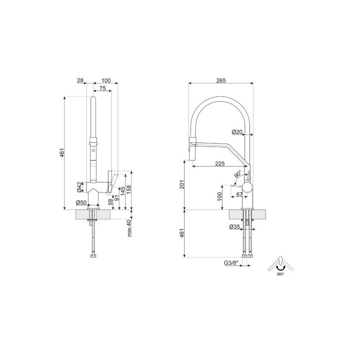 Smeg Segisti, väljatõmmatava dušivoolikuga, silikoonist pööratav tila 360°, H 461 mm