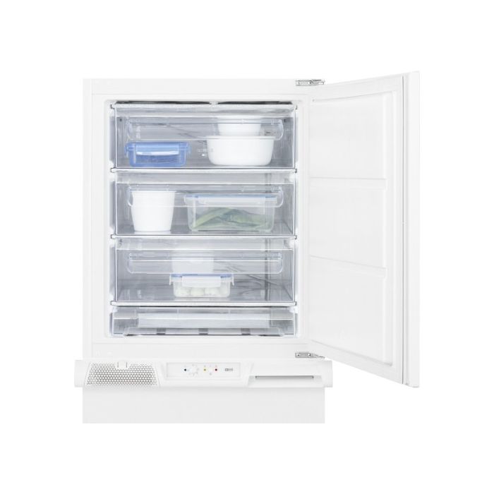 Tööpinna alla integreeritav sügavkülmik, 82 cm, maht 90 l, kiirkülmutuse funktsioon automaatse lülitusega normaalrežiimile, kõrge temperatuuri märgutuli ja helisignaal, max 39 dB, siinidel uksekinnitus.
