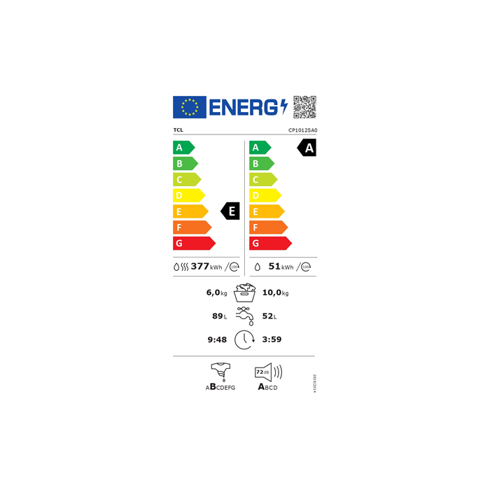 | Energiakulu 100 pesukuiva tsükli kohta | 377 kWh |